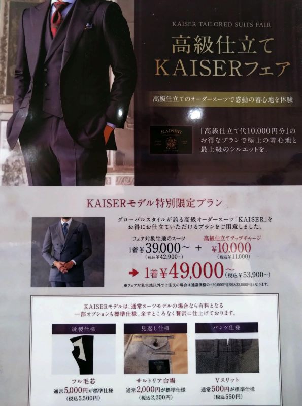 本日は弊社の最高級モデルサルトリアカイザーモデルをご紹介していきます。