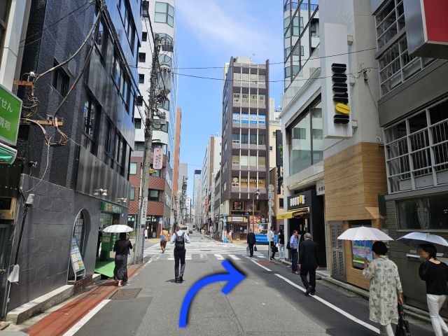 神田警察通りの横断歩道を渡り、右へ曲がります