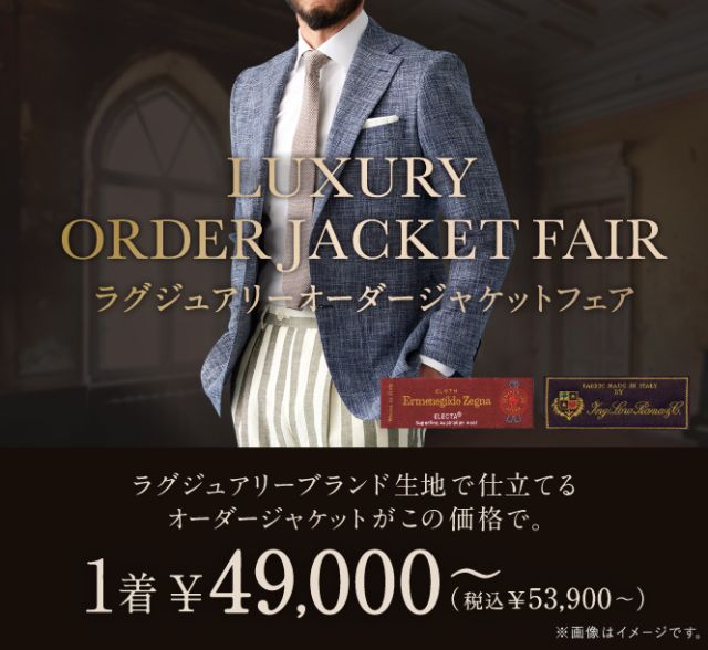 エグゼクティブに人気のラグジュアリーブランド生地からお得にオーダーメイドジャケットをお仕立ていただけるフェアをご用意しました。対象生地の在庫には限りがございますので、是非この機会にいかがですか?