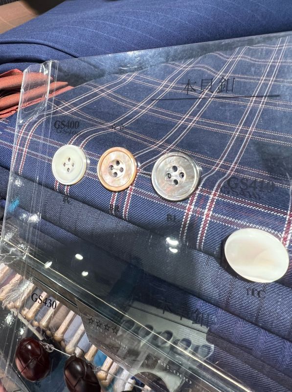 私のおすすめ、キラキラ貝釦なんていかがでしょうか。(¥2,000+税)