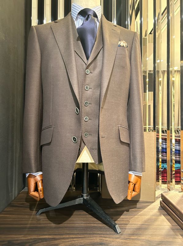 ダークブラウンの生地でスリーピースにするとこのようなイメージです。