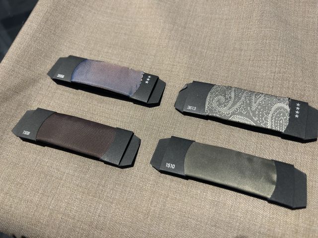 オーダースーツでは釦と裏地を生地に合わせてお選びができます。