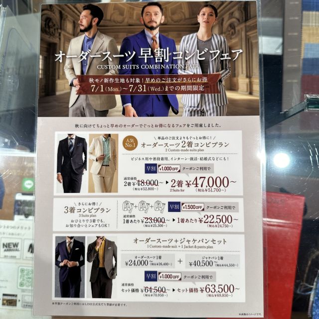 スーツを二着購入いただくと1000円OFFさせていただきいます!!