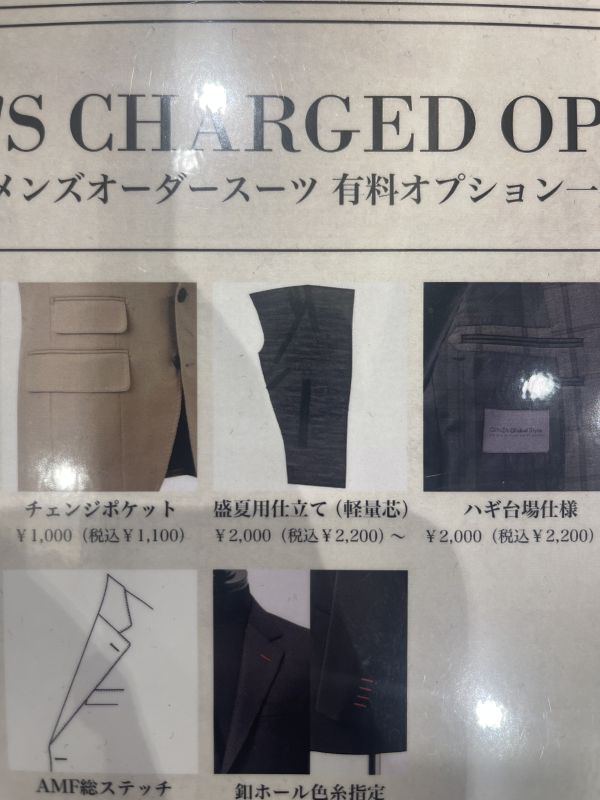 ジャケット・パンツそれぞれお付けいただけるオプションになっておりまして