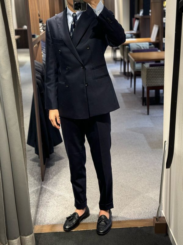 チェンジポケットというポケットを付けることで普通のネイビースーツが更に一段と高級感が増しました。
