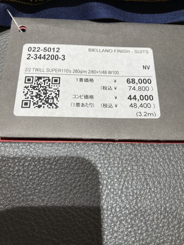 ネイビーとグレー2種類共に同じ価格で、ウール100%生地の中ではかなりコストパフォーマンスの高い生地になっております!