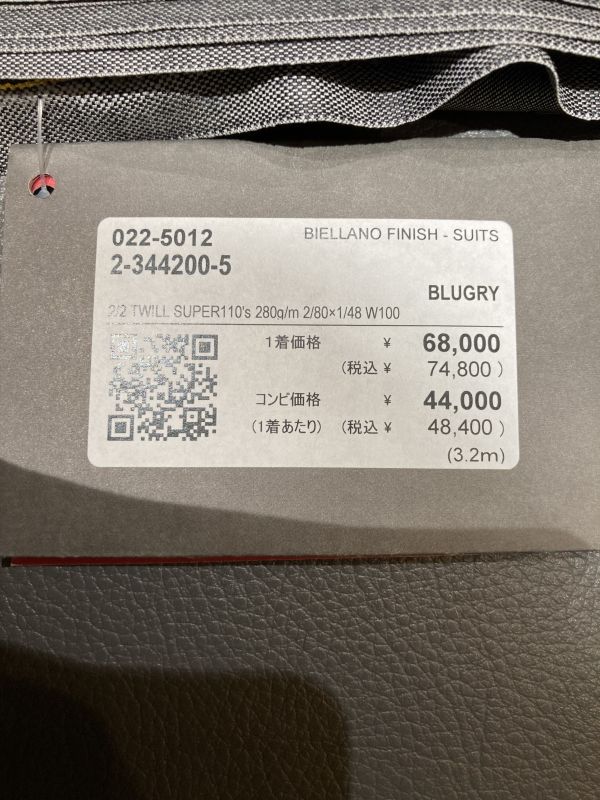 ネイビー生地¥44,000+税とグレー生地¥44,000+税に早割¥1,000OFFが入りまして