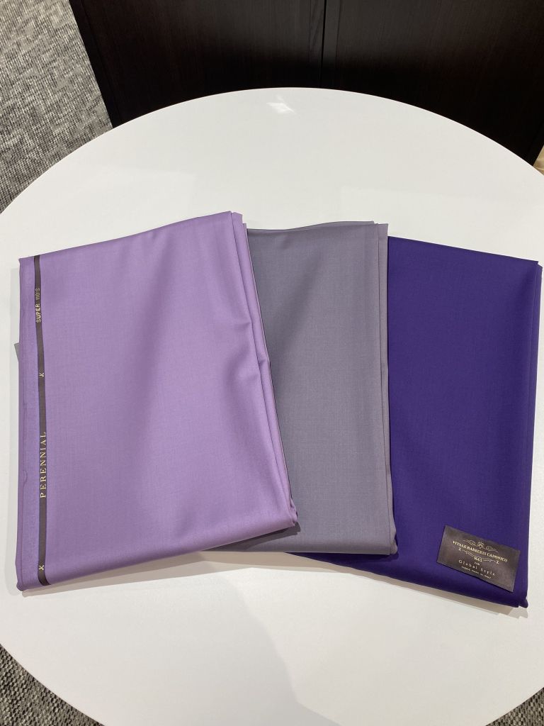 私は一番左の濃ゆい紫で作りましたが、お客様から褒められることが一番多いスーツです!!