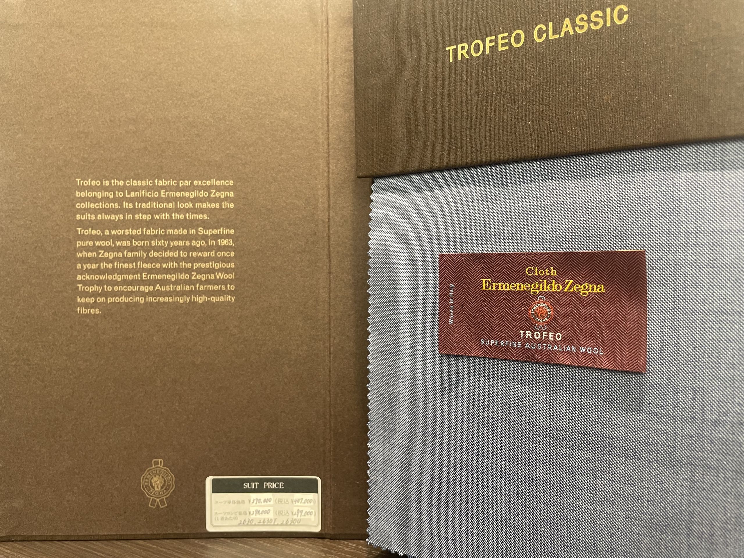 ゼニアの高級ラインであるトロフェオ、上質なウール本来の艶と滑らかな肌触りが魅力なこの生地は正規の価格だとこんなにも(-_-;)