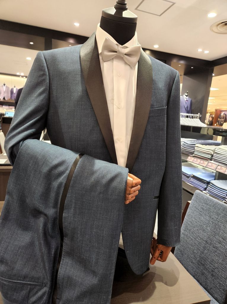 定番のブラックのご用意もあれば店頭にはこのような生地でのタキシードのご用意もあります。