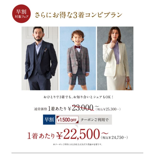 スーツを2着以上お買い上げの方に合計金額から¥1,000お値引きしております♪
