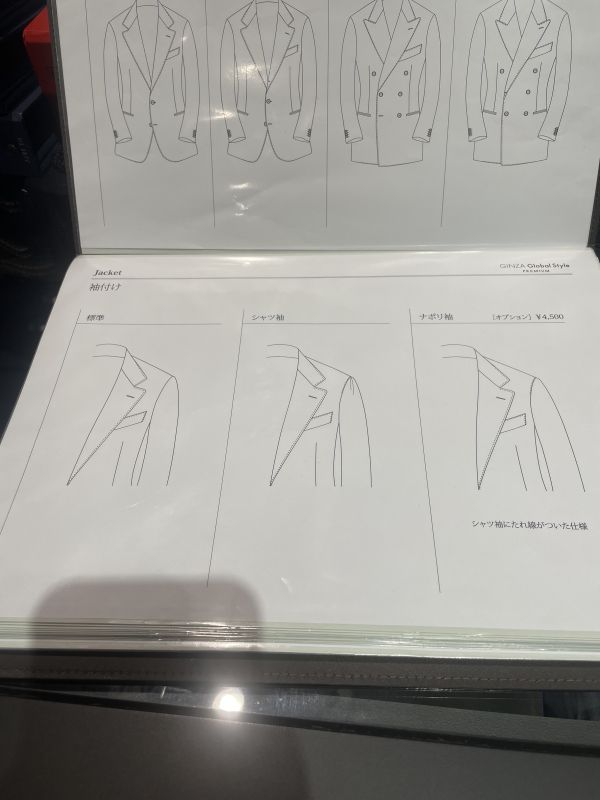 袖付けは、オプションのナポリ袖(¥4,500)にしました。