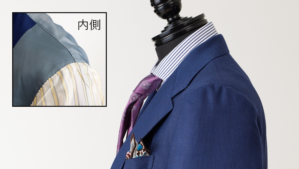 ナポリ袖の特徴ですが、肩パッドがしっかりはいっております。