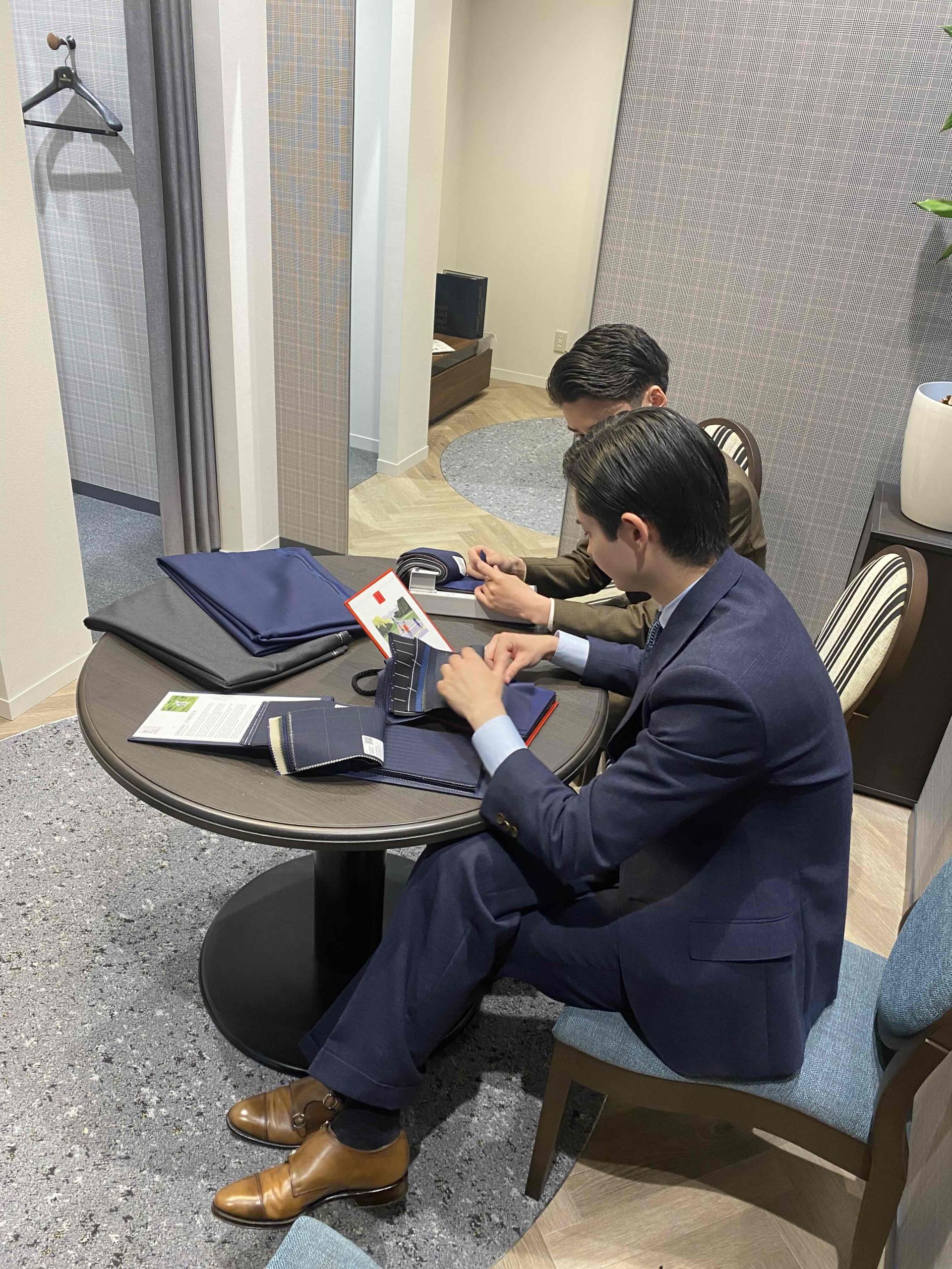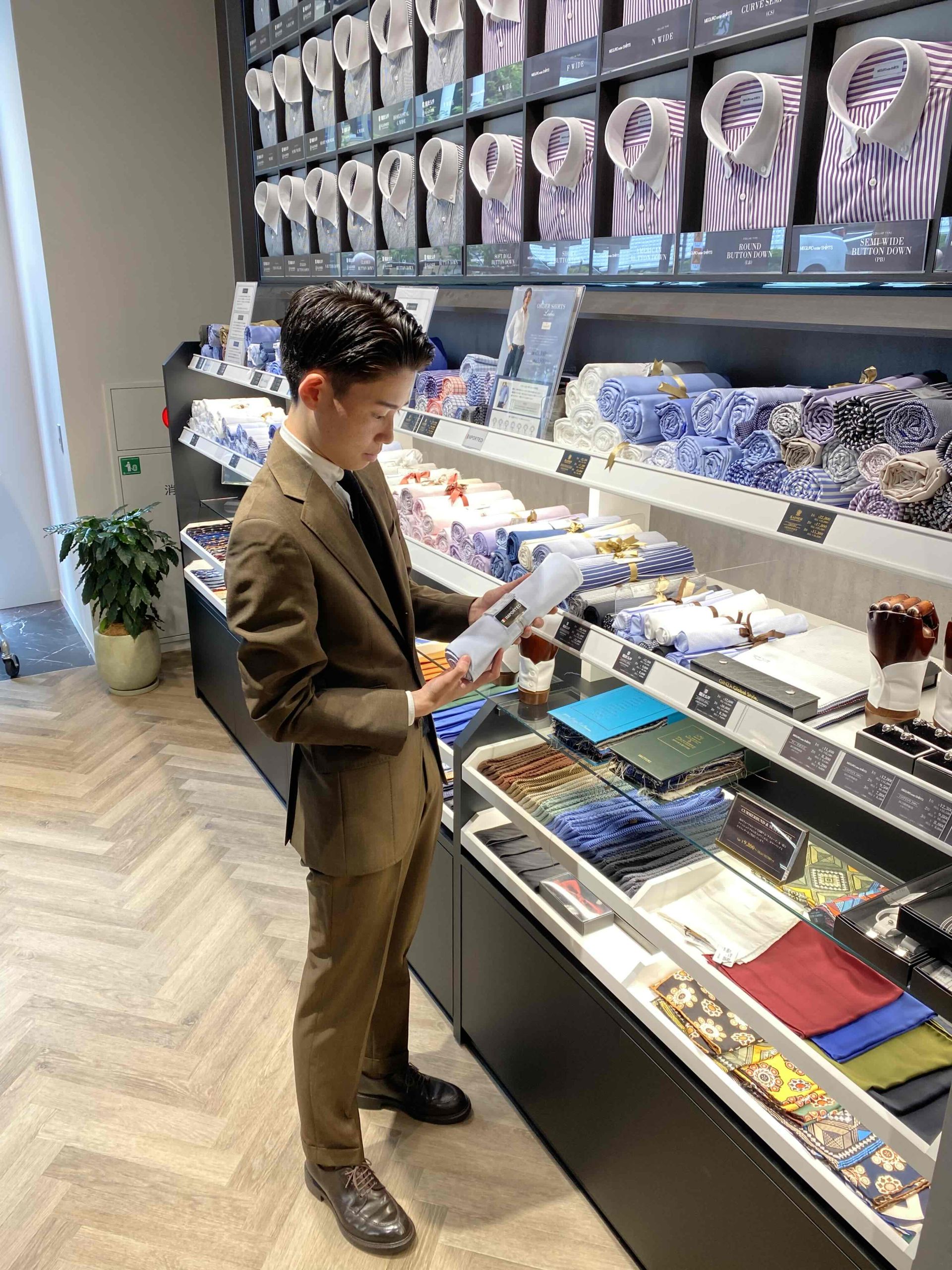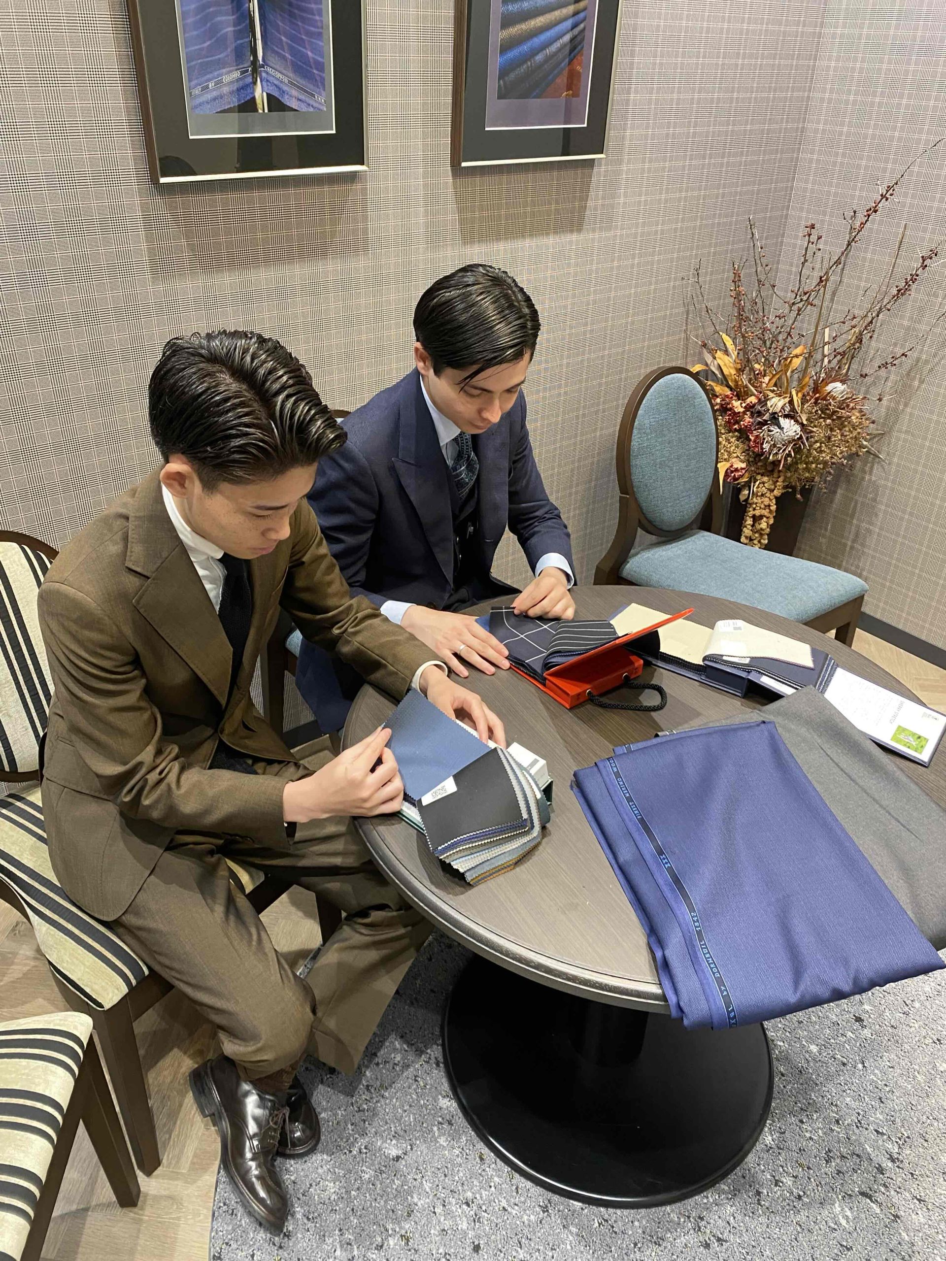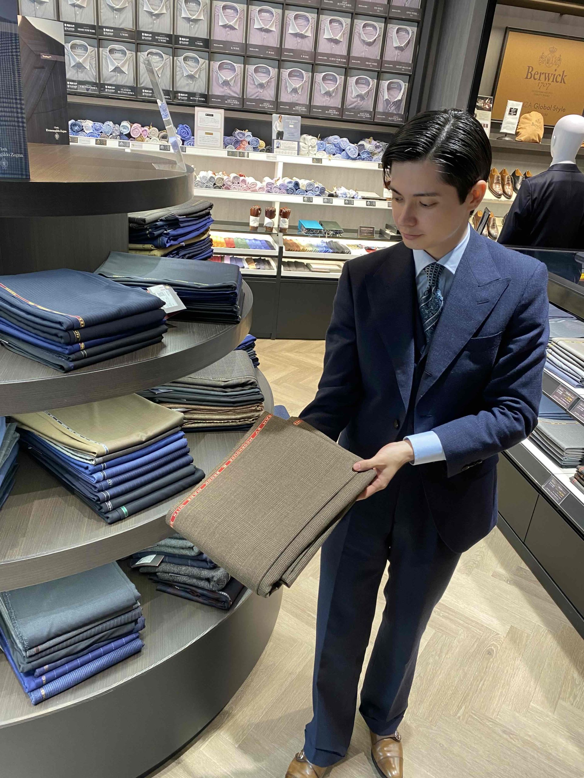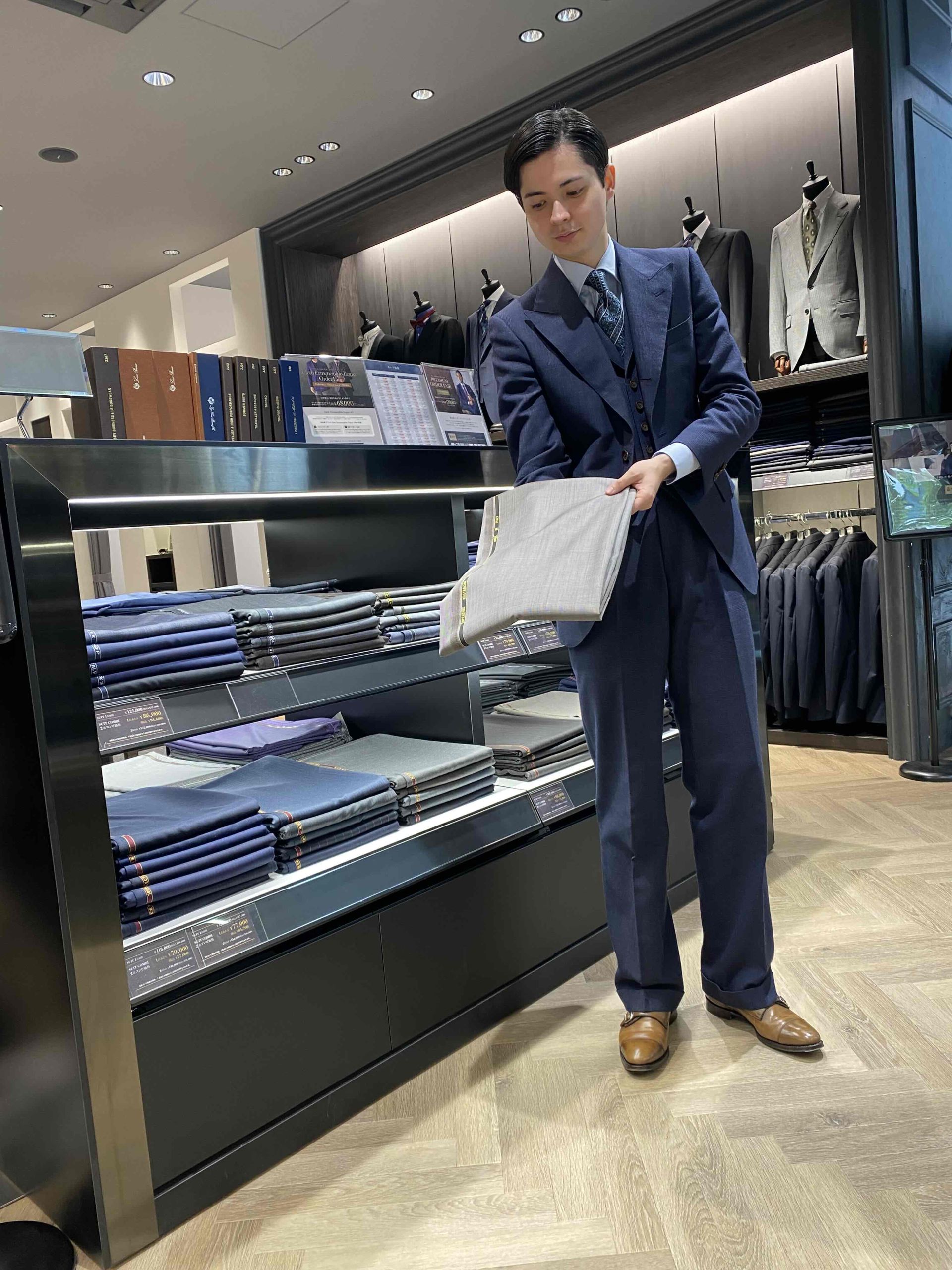 ヴィンテージ生地の向かいには、PREMIUM銀座本店で一番人気生地のゼニアが並んでいます。