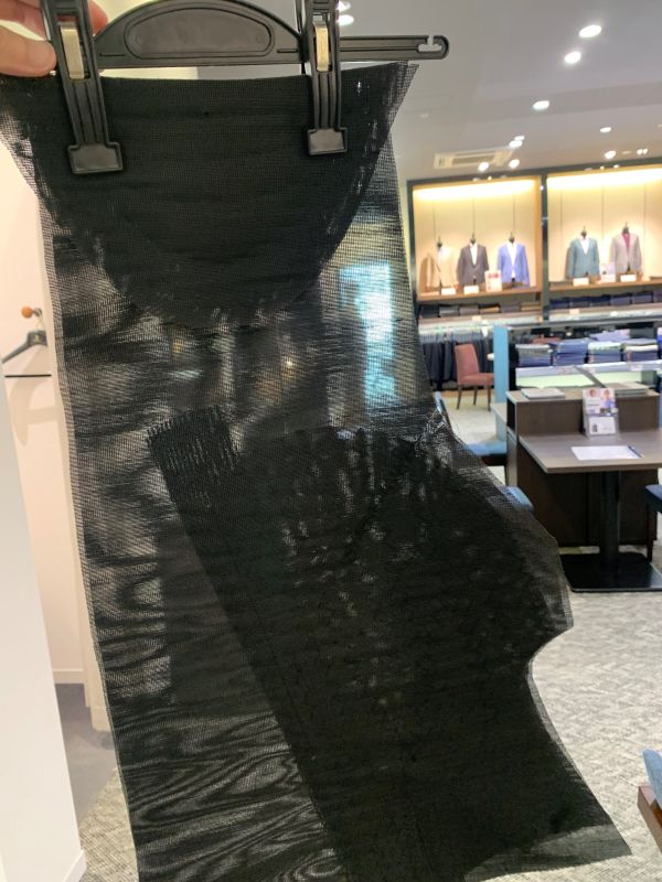 芯地自体も軽さや通気性を追求する為メッシュ状の芯地を開発し