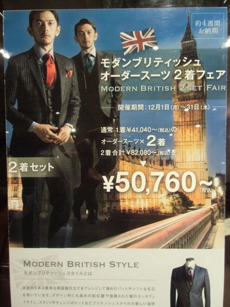 今ならオーダースーツが上記のお値段で2着お仕立てできます!