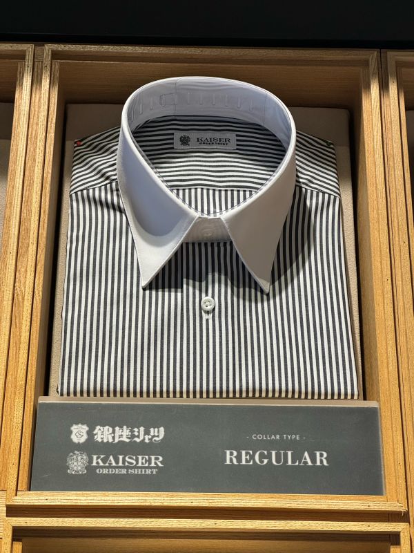 レギュラー衿だとネクタイとの相性は良いですが、ノーネクタイの場合相性は悪いです。