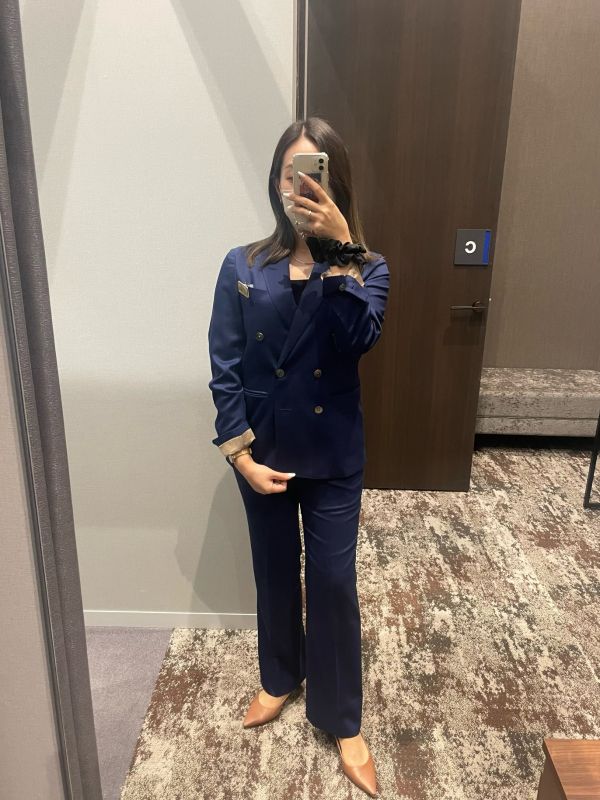 入社時から作ろうと思い続けてきたブルーのスーツです!