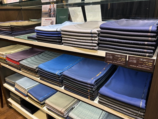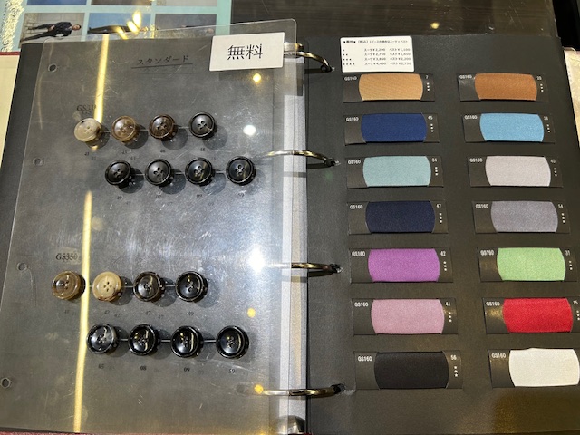採寸が完了したら少し細かい部分ですが釦・裏地や決めていきます。