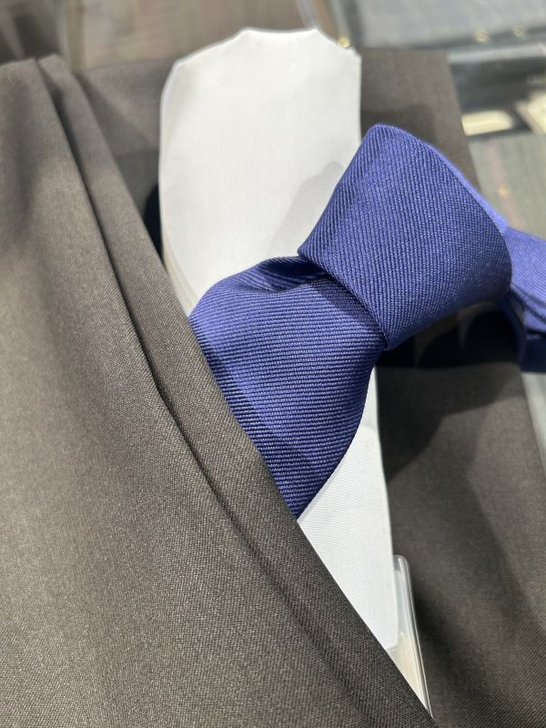 SAXのシャツにネイビーのネクタイを合わせると爽やかな印象になります。