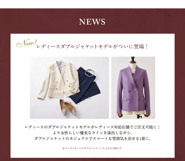 レディースモデルのダブルジャケットがお仕立てできるようになりました!!