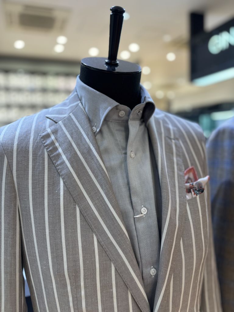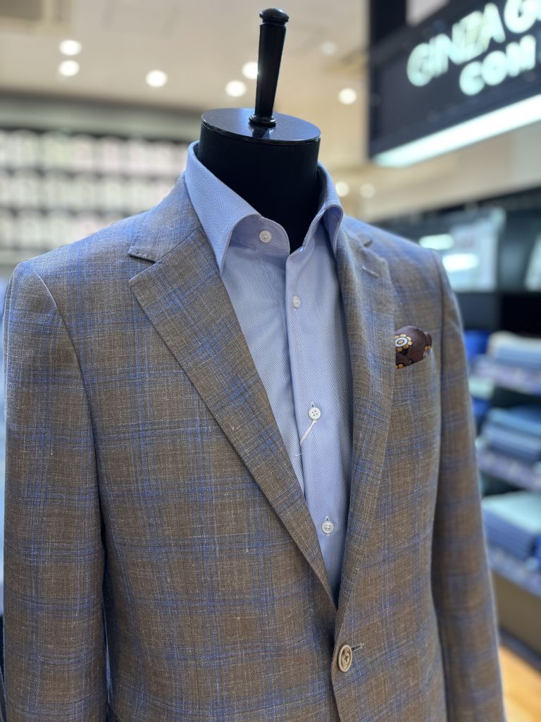 襟元はボタンダウンで少しカジュアルさを引き立てております。