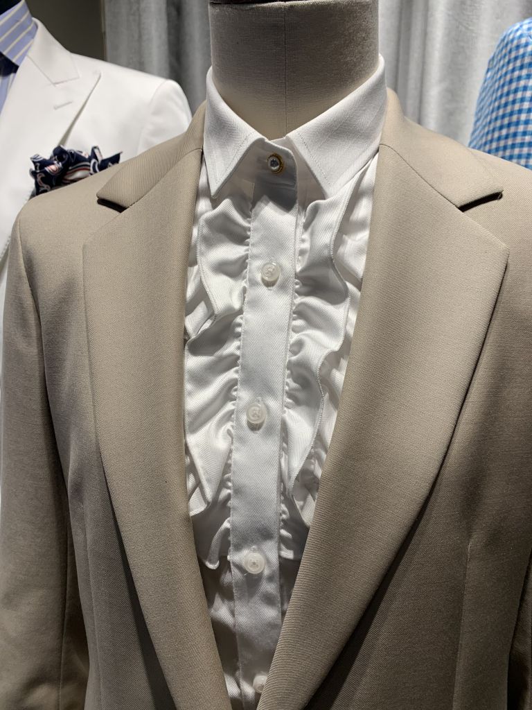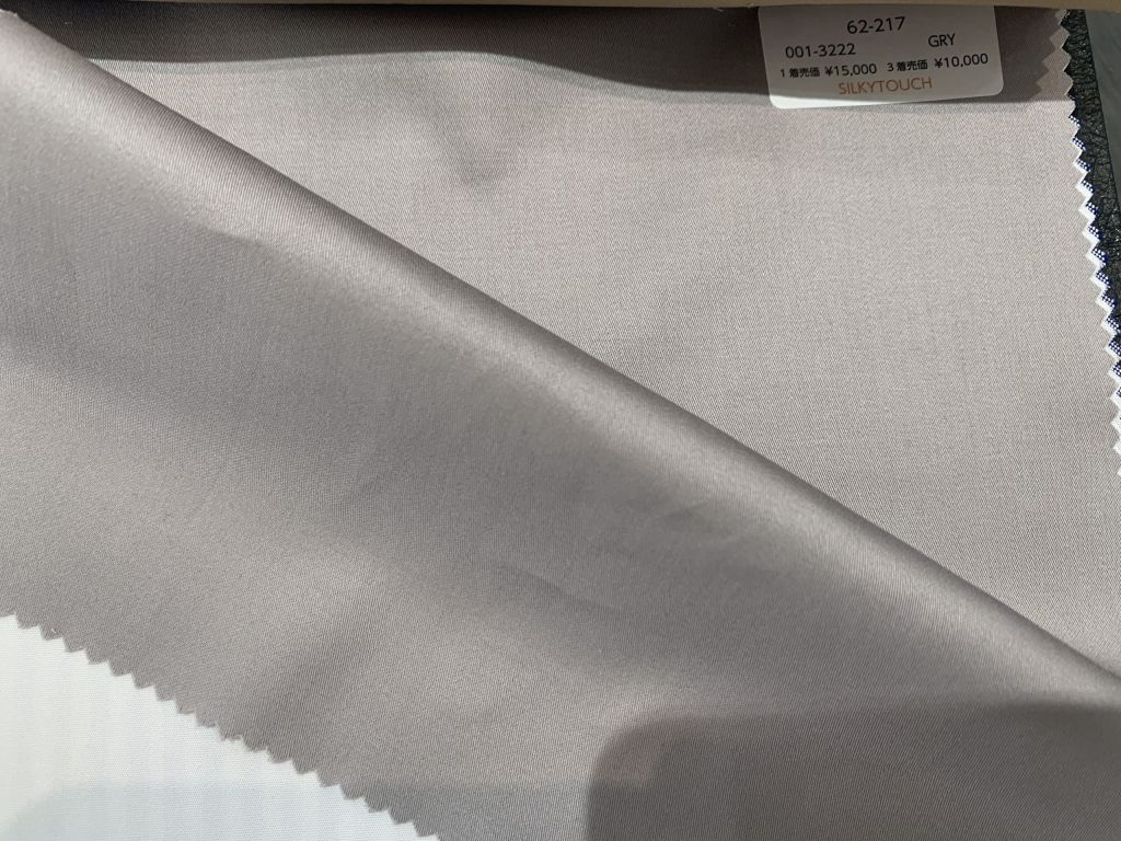 画像では少々伝わりにくいのですが、シャツ生地のなかでもとびぬけた艶感を持っており、
