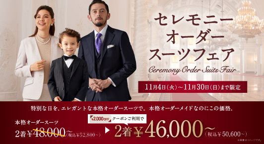華やかな式典にもお召いただけるスーツが2着48000円(税抜き)から