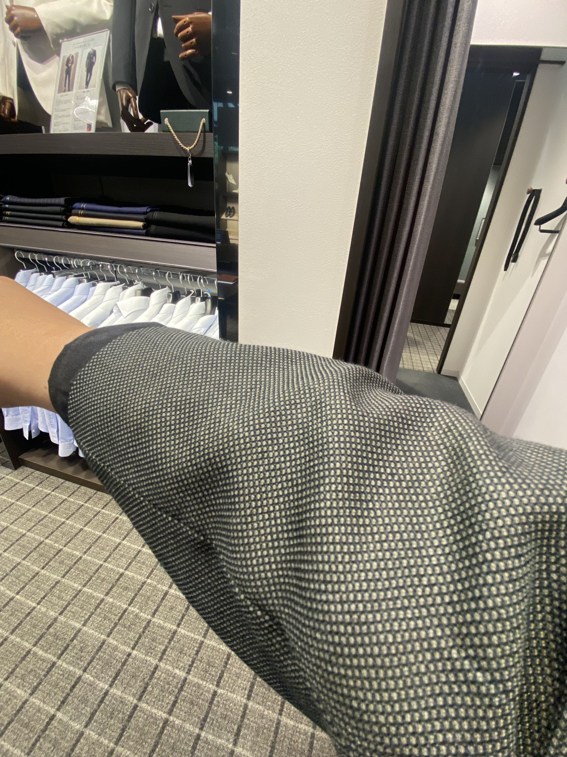 こちらのスーツはマルゾットの生地でバーズアイという鳥の目のような柄になります。