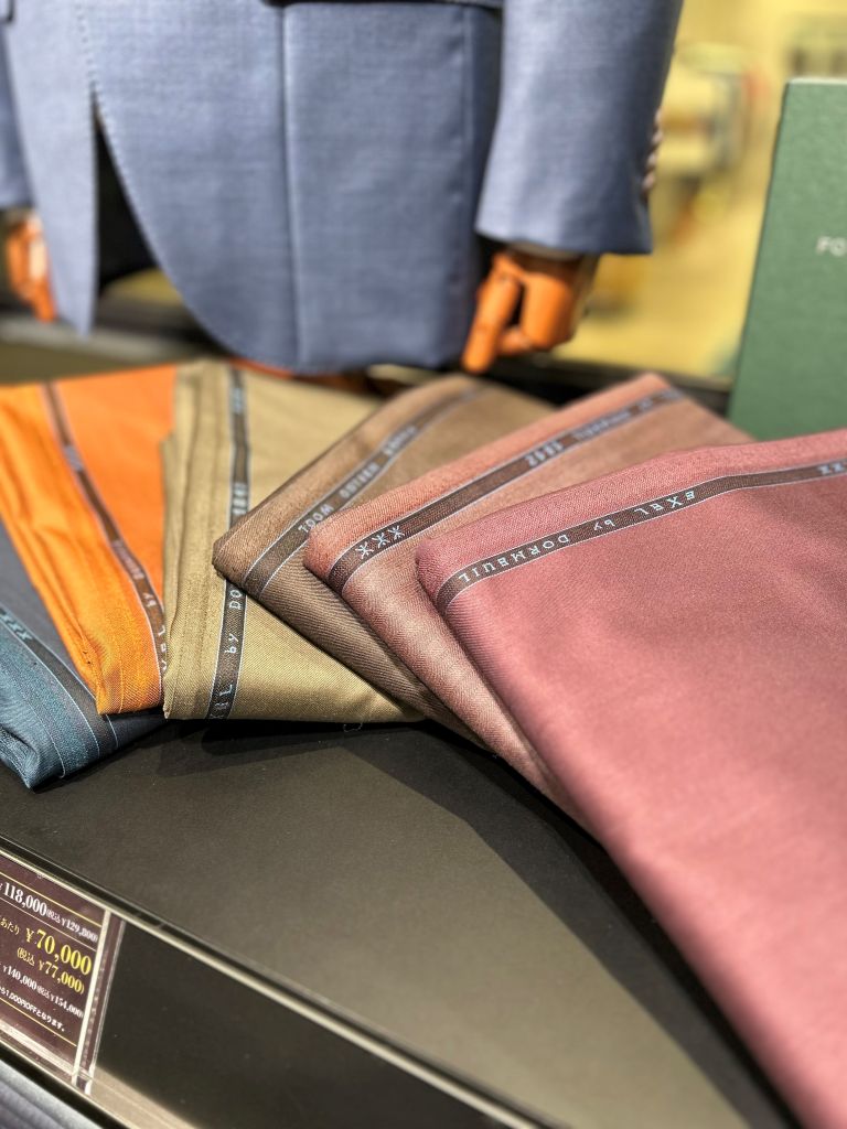 ちなみにこのドーメルの生地は”エクセルブルー”というストレッチ、撥水のかかった高機能のシリーズで、光沢も強く非常に人気が高い商品です!