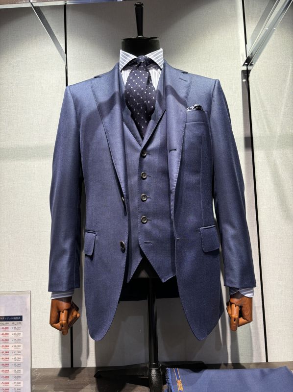 ネイビーの光沢が美しい、こちらはロロピアーナのスーツです。