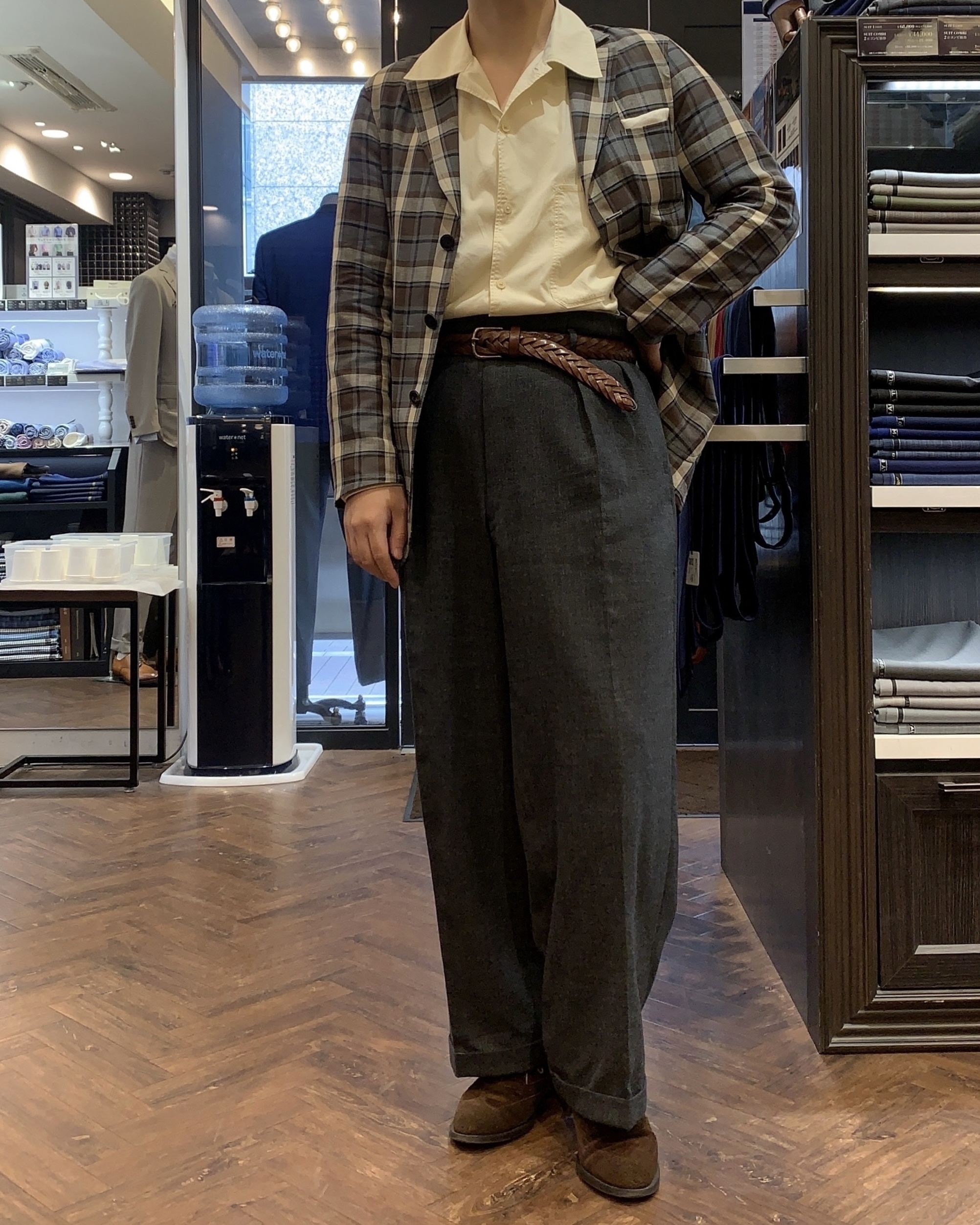 以前は季節関係なく着ておりましたがこの生地、ウールコットンの二者混で個人的に今では夏の定番になっているわけであります。