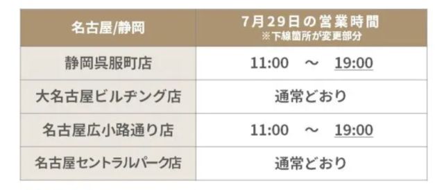7月29日(月)は棚卸業務の為、閉店時間が変更されております!