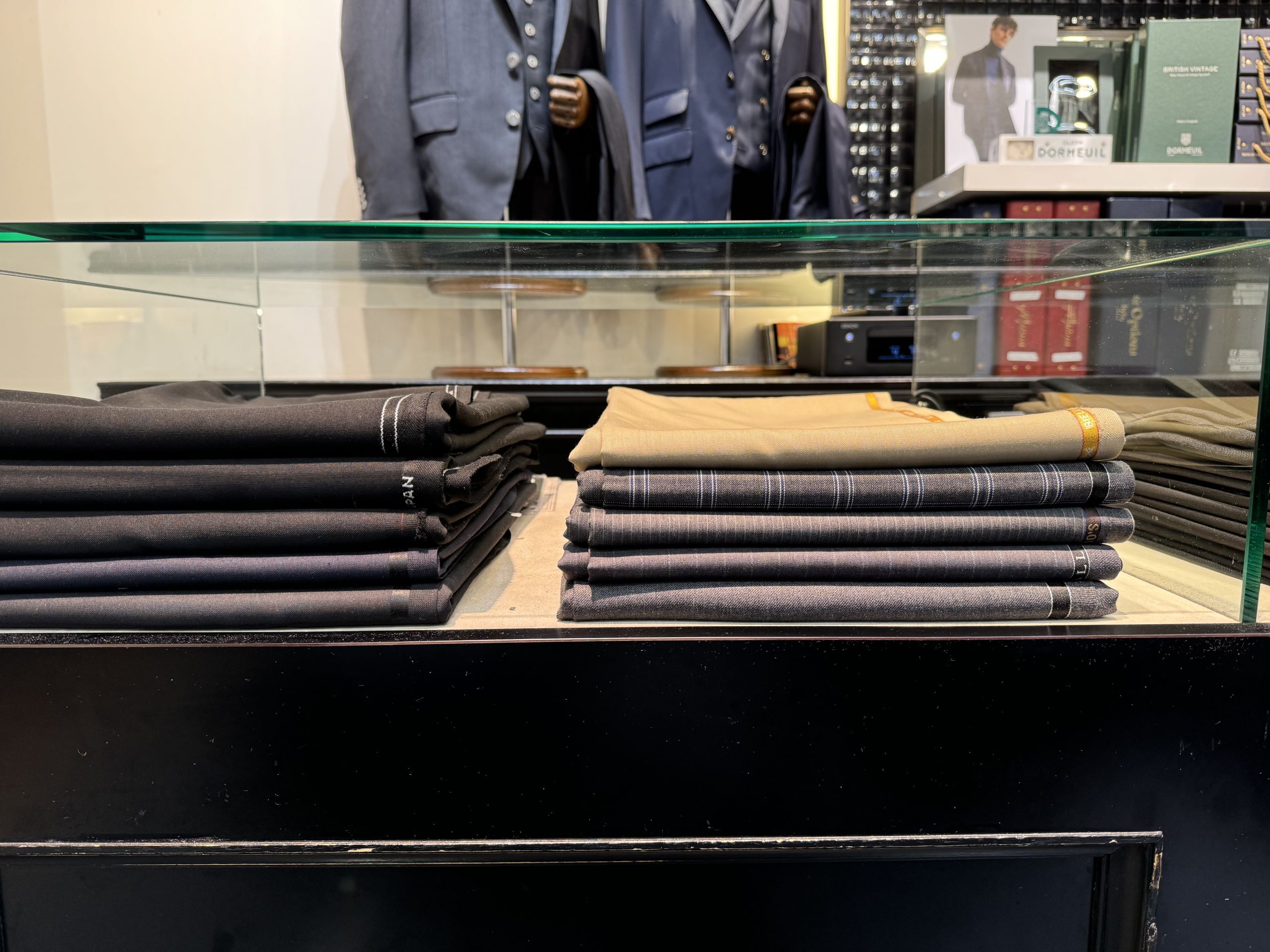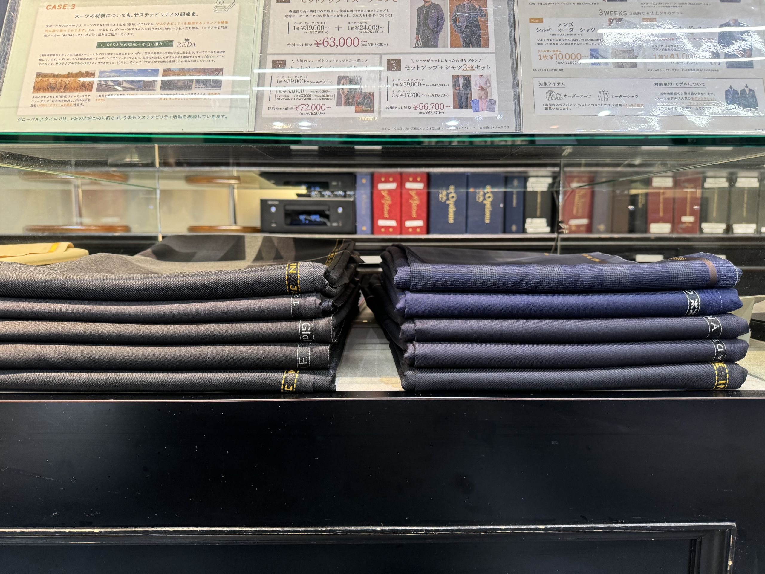 種類は20種類ほどで、礼服の生地や急ぎで結婚式用のスーツを仕立てい方向けにネイビーやチャコールグレーの無地などの