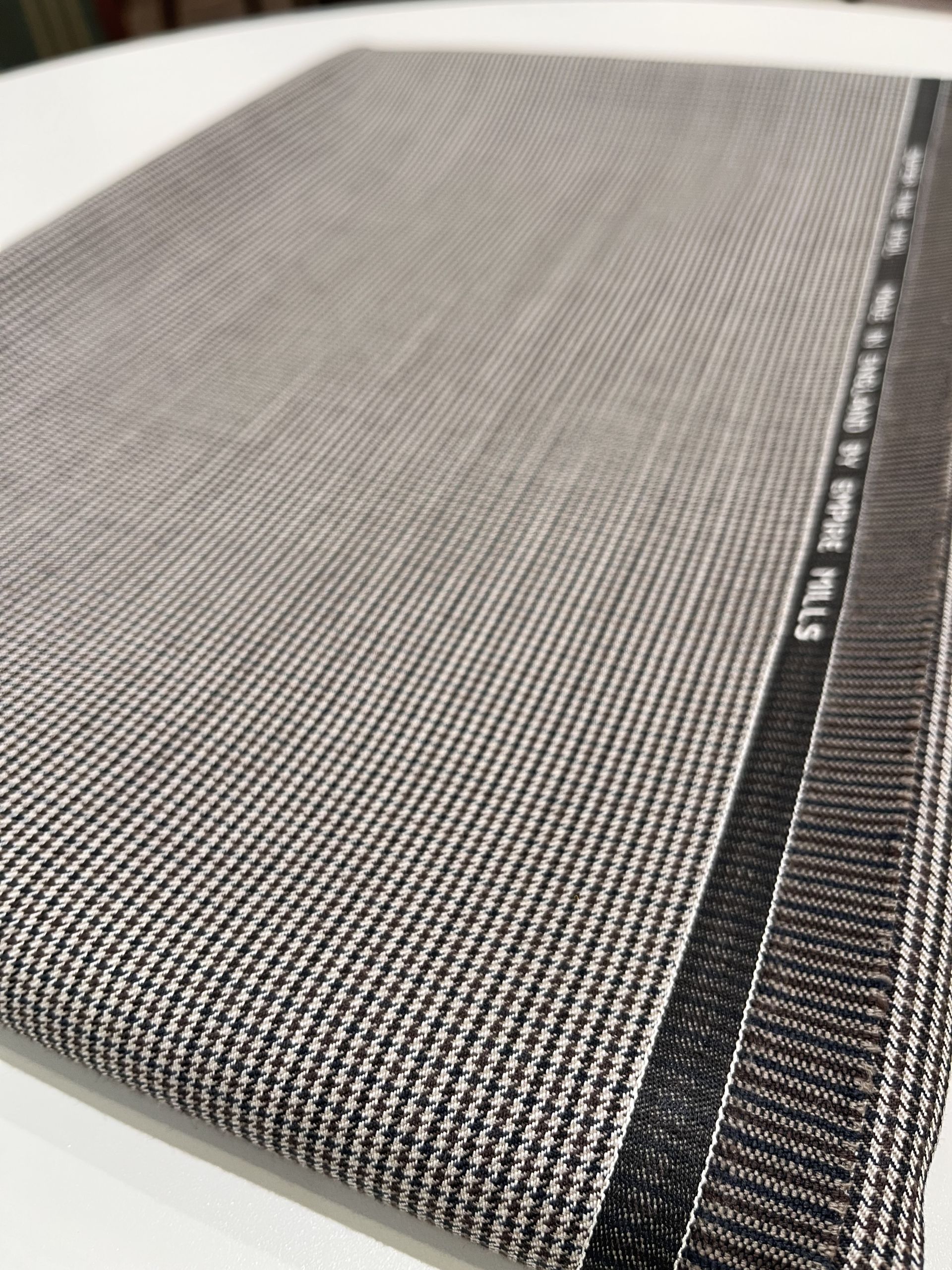 べージのハウンドトゥース柄で、秋冬らしい生地になっております!