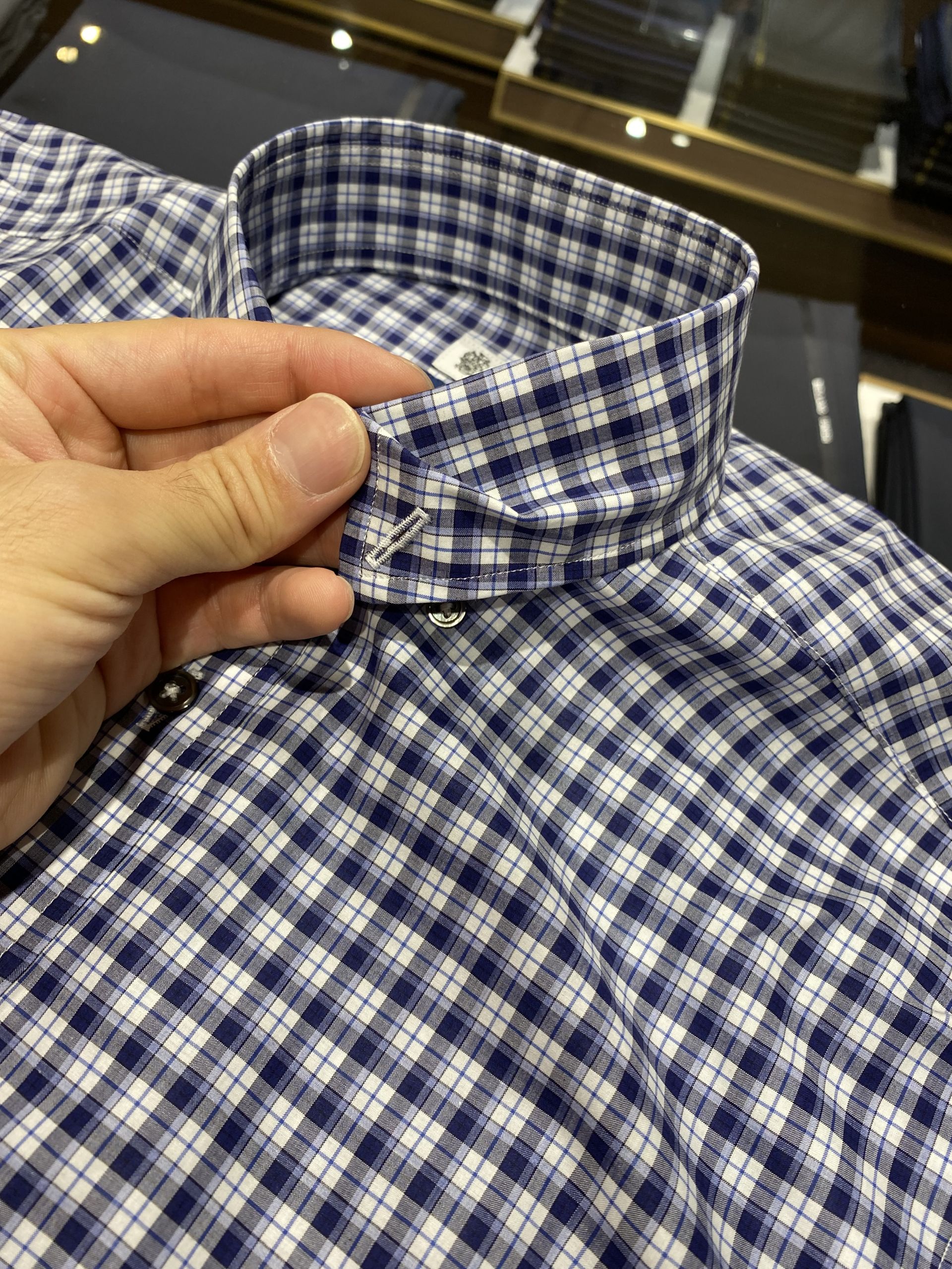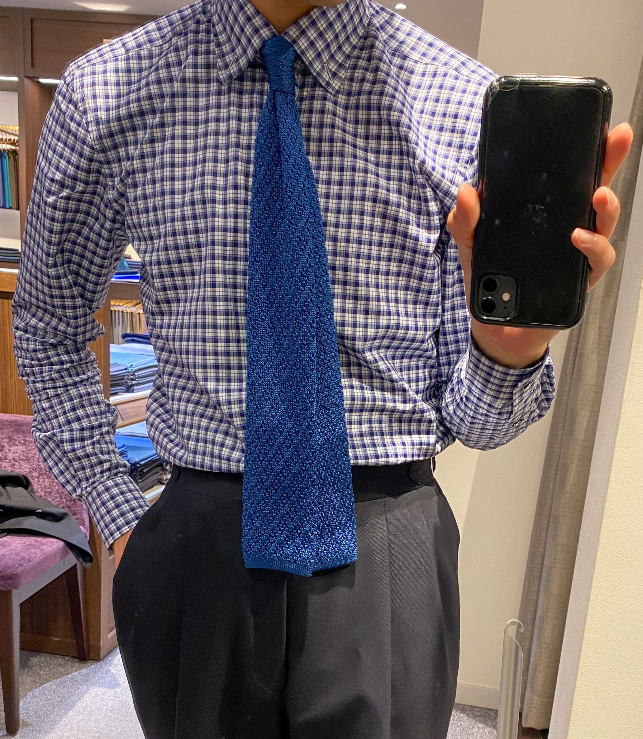 芯地は、一時接着とソフト芯を指定したので襟とカフスはフニャフニャです。