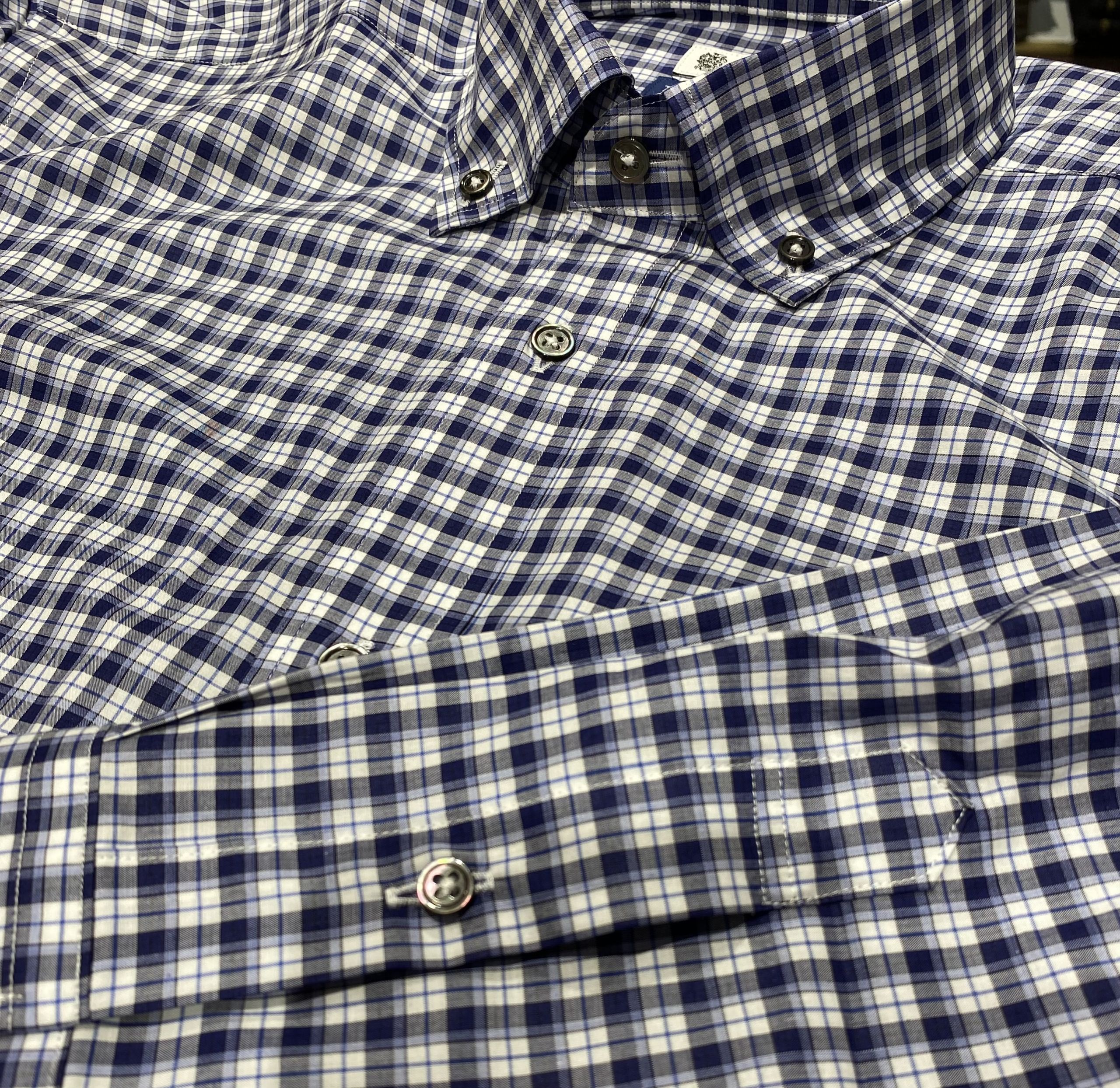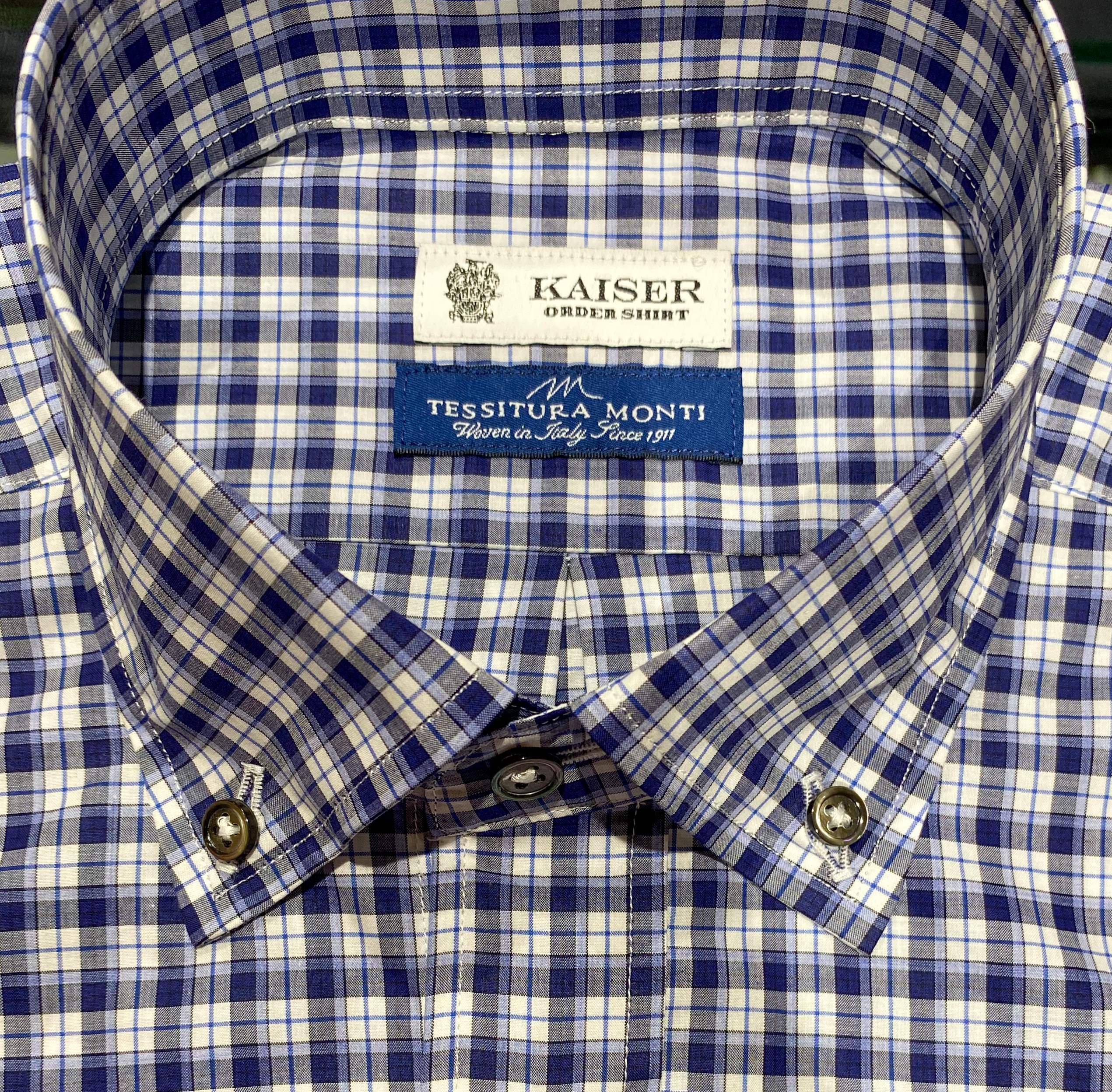 生地はMONTIより、夏らしいマドラス風味のネイビーチェック。