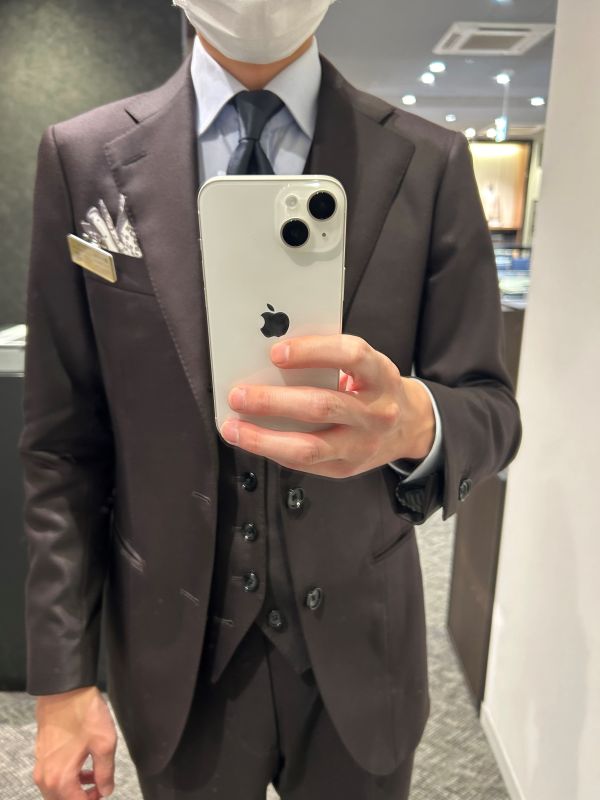 さておき、本日は私三雲とスタイリスト山瀧がオーダーで人気の色味を着用しているので
