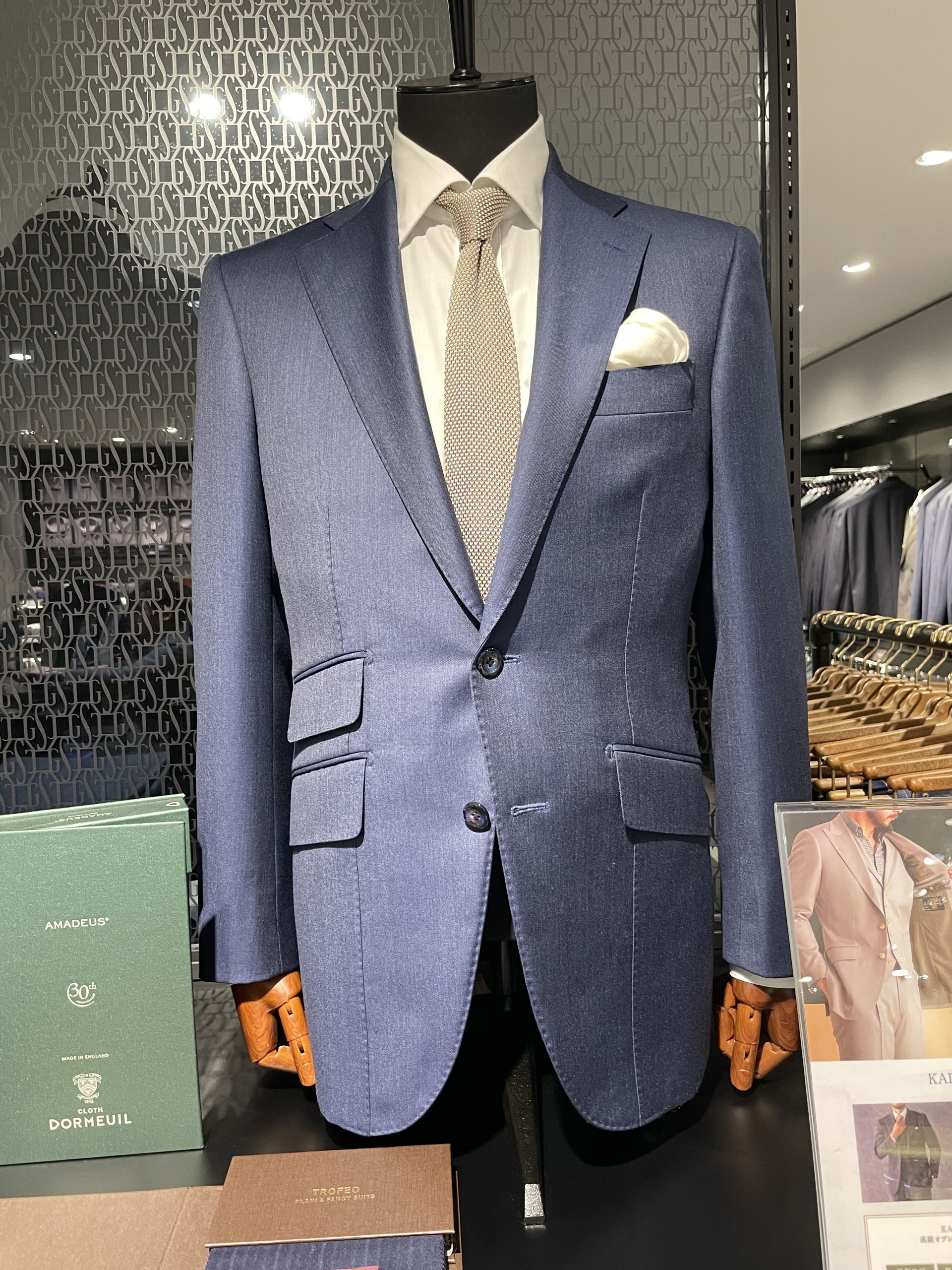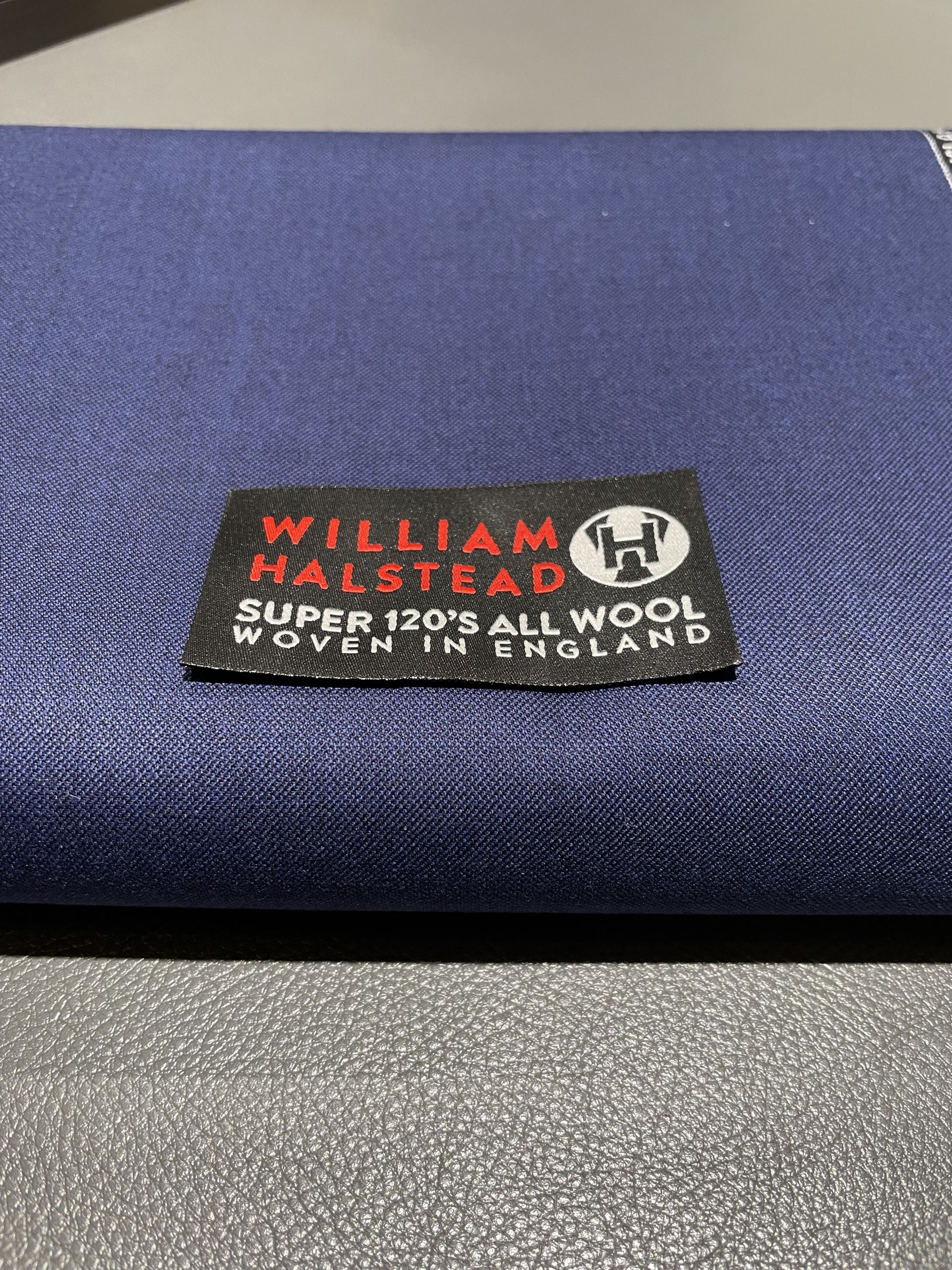 英William HalsteadからSuper120’s 290g/mのロイヤルブルーの生地を選択しました。