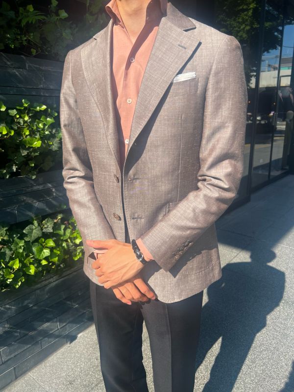 ジャケットはベージュのジャケットでより淡い色味を使い軽さを出しています。