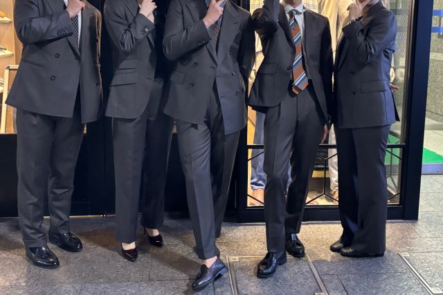 何名かでおそろいの生地、ボタン、裏地でスーツを仕立てました!