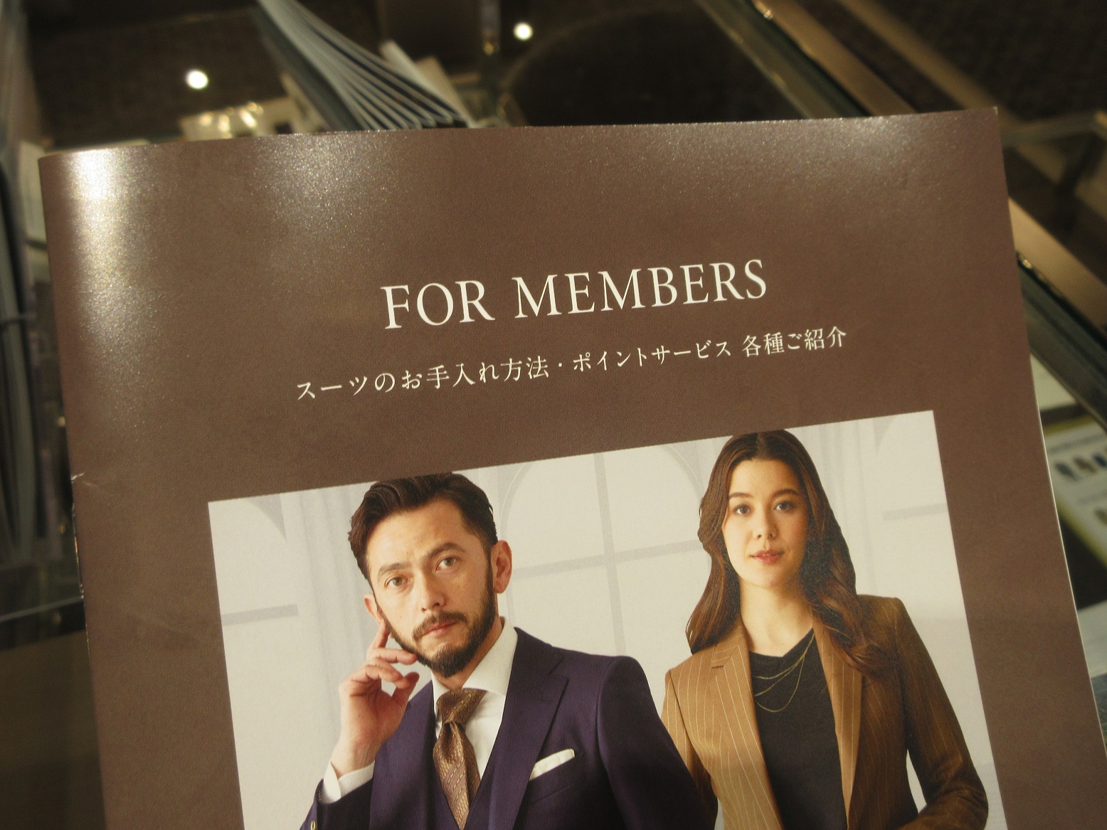 スーツのお手入れ方法やポイントサービスのご案内、ギフト券の内容等が記載されています。