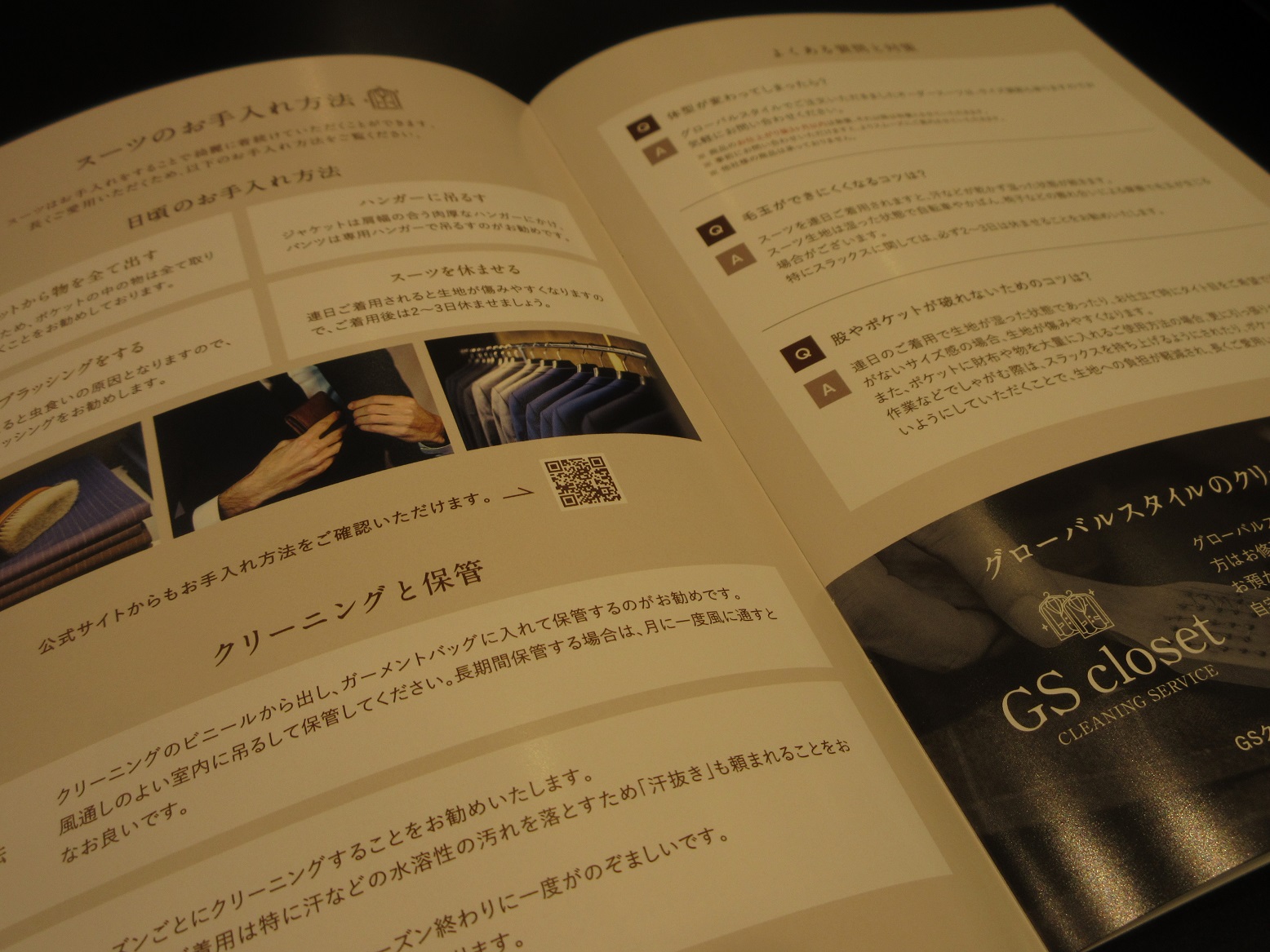 というわけで今回は数あるスーツショップの中でも超人気ショップにまで成長したGSから、新リーフレットが登場しましたので、そちらのご紹介です。