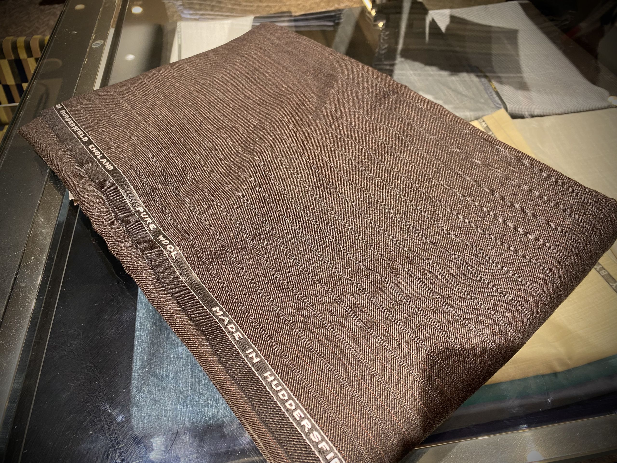 ブラウンストライプの英国らしい生地です。