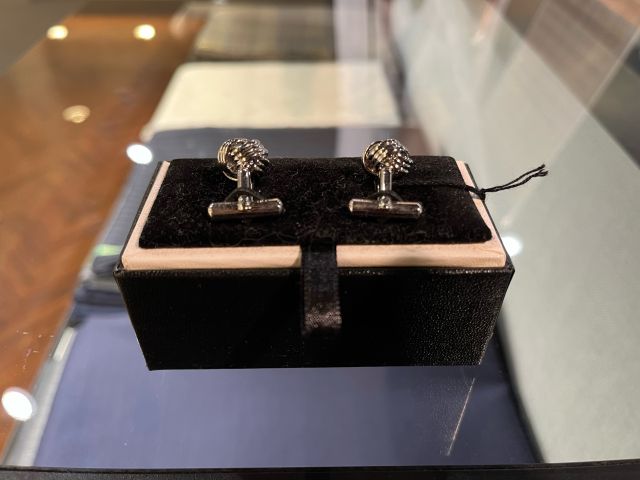 袖釦の代わりにシルバー色のカフスを留めることで、普段着ているシャツに