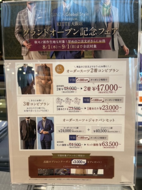 8月のフェアですが、2着ご購入頂くと早割りで500円ずつお値引き