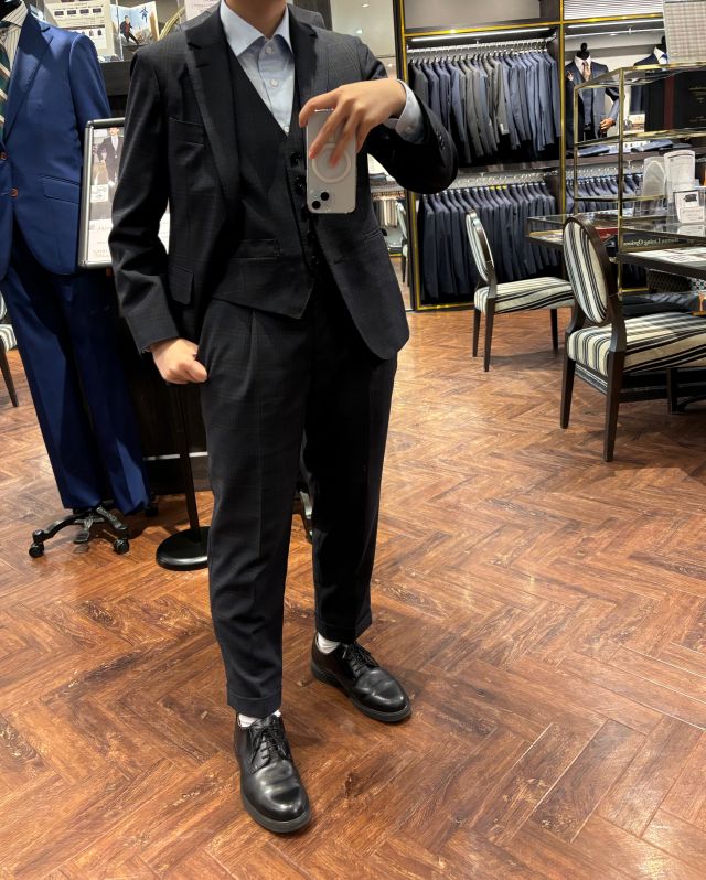 今回はネイビーのスーツと組み合わせてみました!
