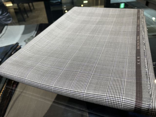 ドーメルのグレンチェック。こちらは実際はブルー系の糸が入っておりますので近くで見ると少し青く見えます。