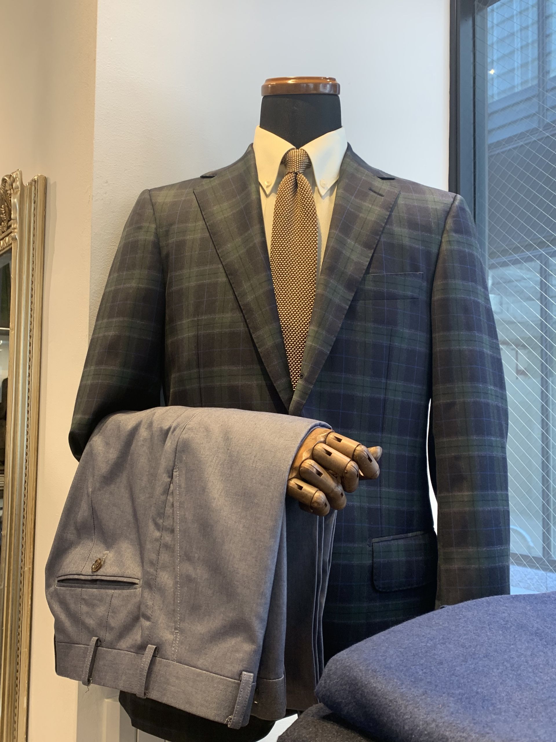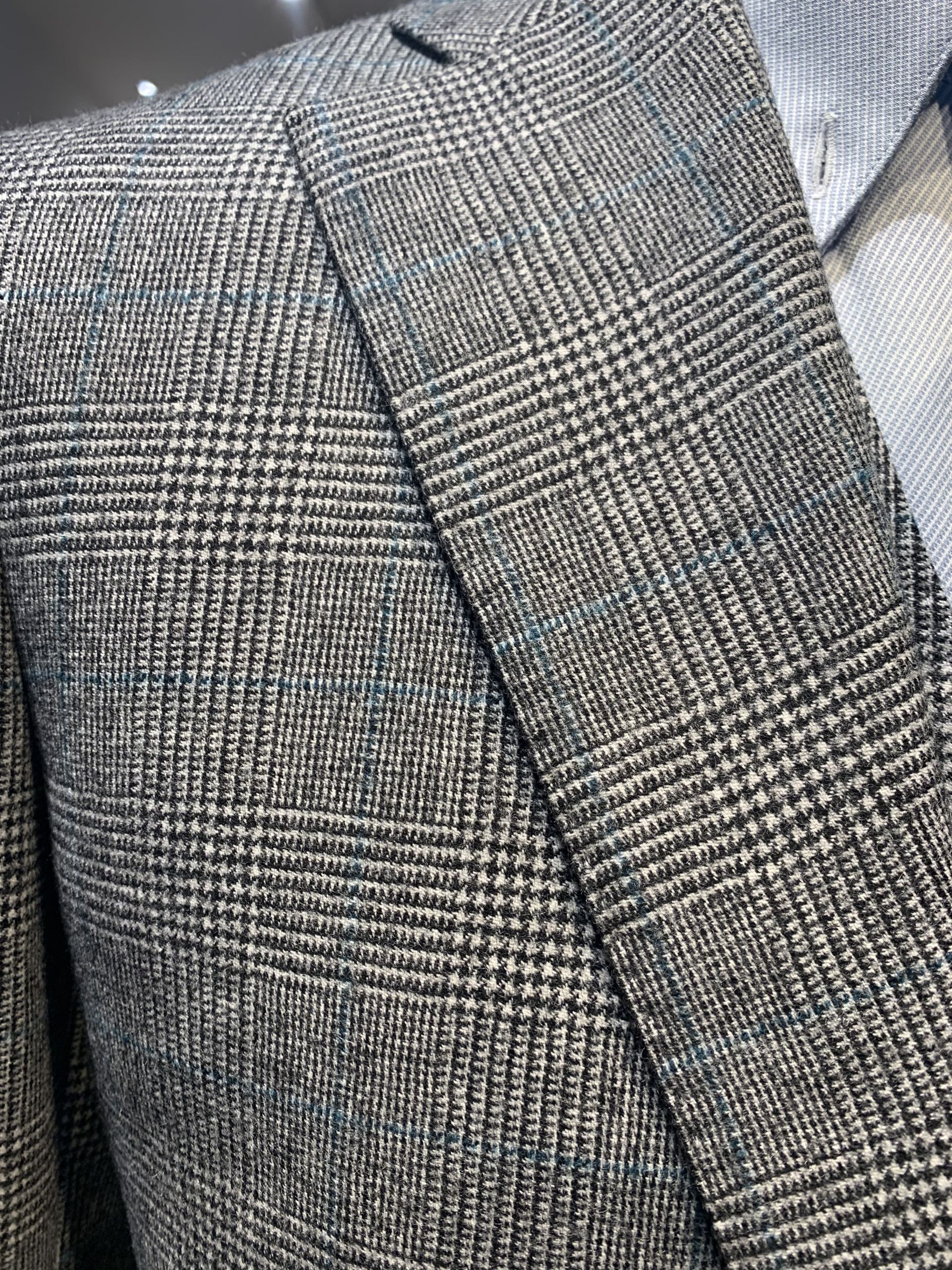 少し起毛がかったフランネルのグレンチェックに、ターコイズブルーのウインドペン、、、
