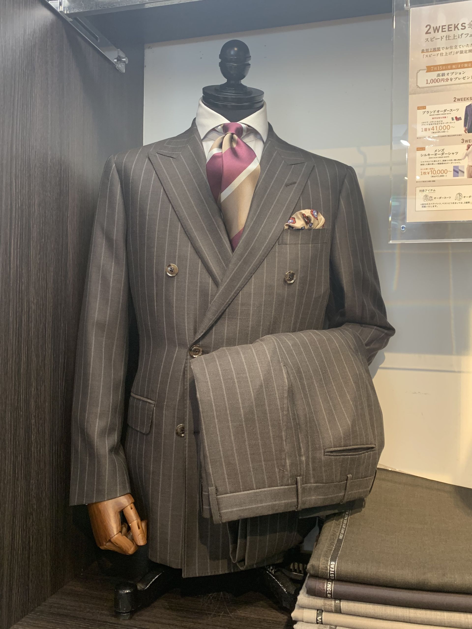 最近は若い方からの人気も高いブラウンのダブルスーツ。